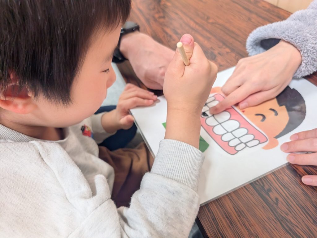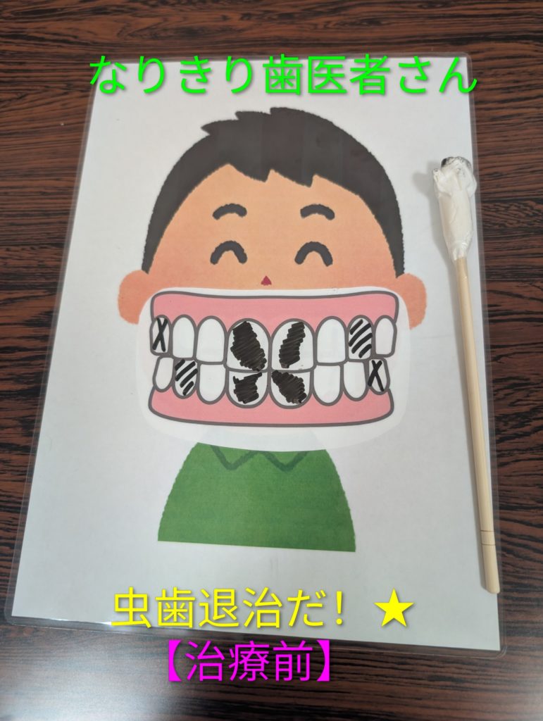 ♪なりきり歯医者さん♪ 2026年3月4日 最終更新日時 : 2026年3月4日 akatonbo-hokagoday 虫歯がいっぱいの男の子。子ども達に歯医者さんになりきってもらい、虫歯の治療をしてもらいました。 歯ブラシは、割りばしにティッシュを巻き付けたものを作りました! しかしいざやってみると、なかなか虫歯が手ごわく治療がすすみません。 でも時間をかけて、しっかり虫歯を治療することができましたよ! \ 最新情報をチェック / FacebookXBlueskyHatenaCopy
